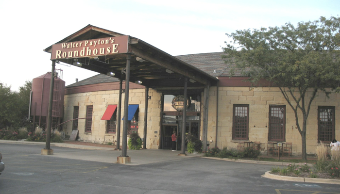 Renie had an hour-long snooze after we checked into the Comfort Suites in Aurora, Illinois. When Sleeping Beauty arose we walked across the parking lot and went into Walter Payton’s Roundhouse restaurant and museum. Several other women from our bus were finishing their meals there.