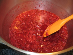 I used 54 ounces (just shy of 3-1/2 pounds) of cherries, thawed and drained a bit, to make the measure required in the recipe. I was hopeful of being able to eke out enough juice for at least half a batch of Cherry Jelly from that drained juice.