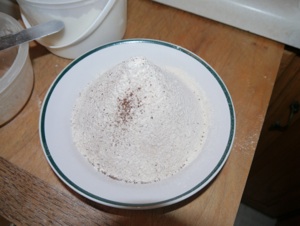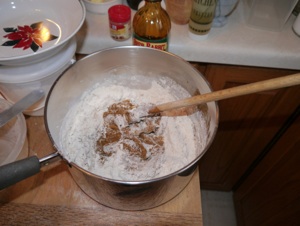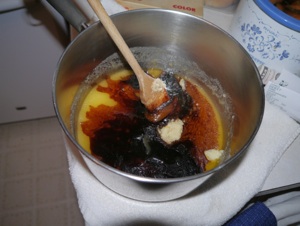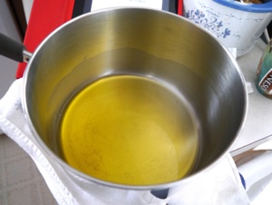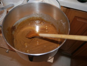 I pulled up the recipe on my iPad in MacGourmet and set to work. Melting the (butter flavor) Crisco is the first step and I do it in a great Farberware 4-quart saucepan.