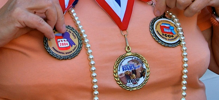 Oh, the picture at the top of the page? That’s my ample bosom showing off the three medallions I have been awarded for being the best overall canner at the Great Minnesota Get-Together. Sweet. No one else has three of them. (Modesty doesn’t become me.) Few have as much fun as I do.