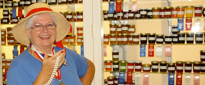 Since 1981, Minnesota State Fair canning and baking judges have awarded me lots of ribbons (all colors, including lots of blue ones and a bunch big fancy blue rosettes) for my efforts; twice I was named the Fair’s “Prestigious Processor of the Pantry” and I have the Olympic-style medallions to prove it. How silly is that name for the canning champion! (You may call me Queenie.) A local company, M. A. Gedney, of Chaska, Minnesota, has produced two of my blue ribbon jam recipes for commercial distribution as part of their State Fair Award Winning Recipes line of preserves . The first jam, Peach Raspberry, introduced in 1996, has been retired from the line, and the second, Cherry (introduced about four years ago), is still one of the best sellers in the line—they make it at least as good as I did! Yummy stuff! In June, 2005, Minnesota’s First Lady Mary Pawlenty threw a dinner in my honor recognizing me as one of Minnesota’s Notable Women. Okay, so she thought about 35 other women were worthy of the honor and invited them to the dinner, too. They probably all think it was for them, but I know better.